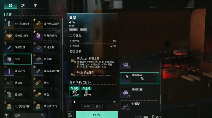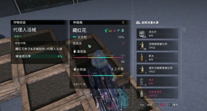 嫁接催化剂:在【补给工作台】制作。能提高嫁接的成功率,分为普通和高效两种,成功率能加1%到10%不等。