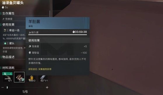 | 幽光蘑菇罐头 | 立刻回复 100 点水分 和 100 点理智值 |